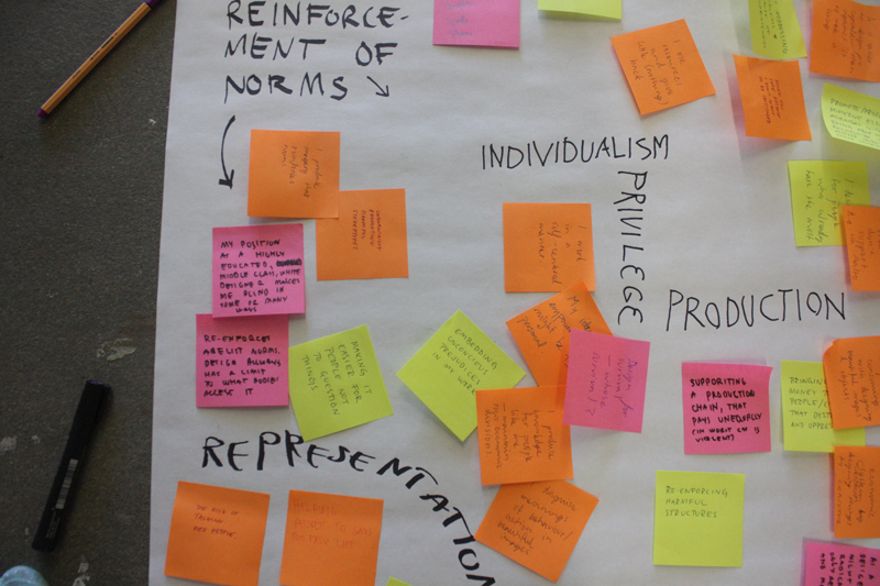 Designer as Feminist was a two-day workshop planned for altogether 20 students and recently graduated practitioners in the fields of design and architecture. Our aim in the workshop was to phrase critical questions in order to generate insightful discussion on the overlap of design and feminisms. We strived to collectively come up with tools and ideas for feminist design and architecture practice, and to contribute to the wider discourse on their professional and societal significance.
